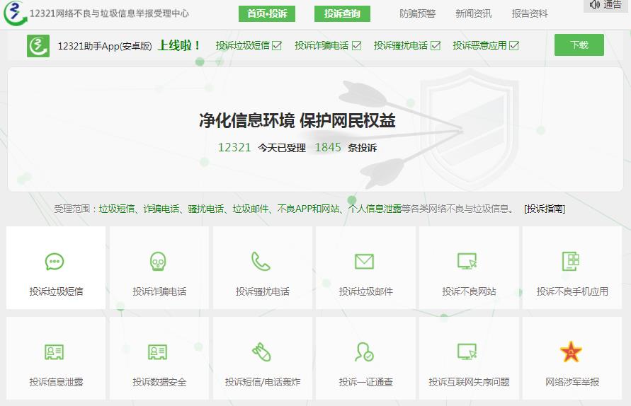 12321网络不良与垃圾信息举报受理中心为工业和信息化部委托中国互联网协会设立的公众投诉受理机构,负责协助工业和信息化部承担关于互联网、电话网等信息通信网络中的不良与垃圾信息投诉受理、线索转办及信息统计等工作。