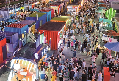 而备受市民喜爱的“蚂蚁市集”,正是这个宏大规划中最具烟火气的一笔。占地约2万平方米的市集,以音乐为灵魂纽带,巧妙融合了餐饮、购物、娱乐、社交等多元业态。如今,市集一期、二期已热闹开市,200余个特色商户品牌在此扎根,300余位个体商户在这里找到了创业舞台,让墨城的夜晚有了更丰富的打开方式——市集里的音乐演出时不时掀起小高潮,年轻人或围坐听歌,或穿梭逛买,热闹氛围从黄昏延续到深夜。