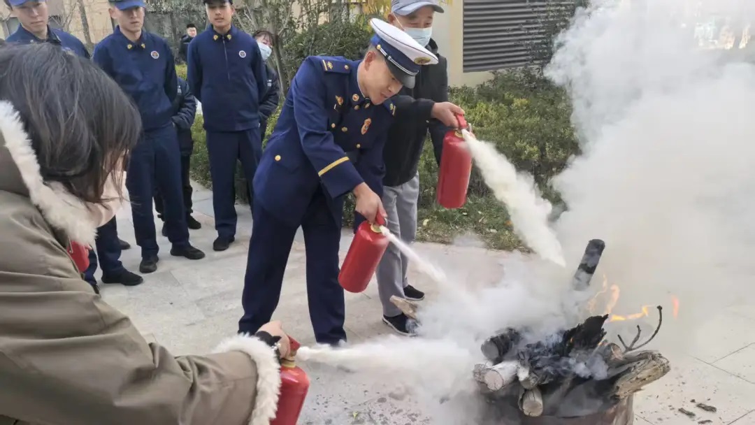 在专业人员的指导下,青建博海物业工作人员及部分居民踊跃参与模拟灭火演练,亲身体验如何使用灭火器对模拟火源进行扑救,通过实践进一步巩固所学知识,提升在紧急情况下的心理素质和实际操作能力。