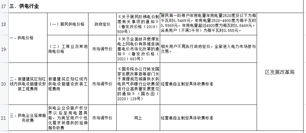 即墨区供水供电供气供暖行业收费目录清单
