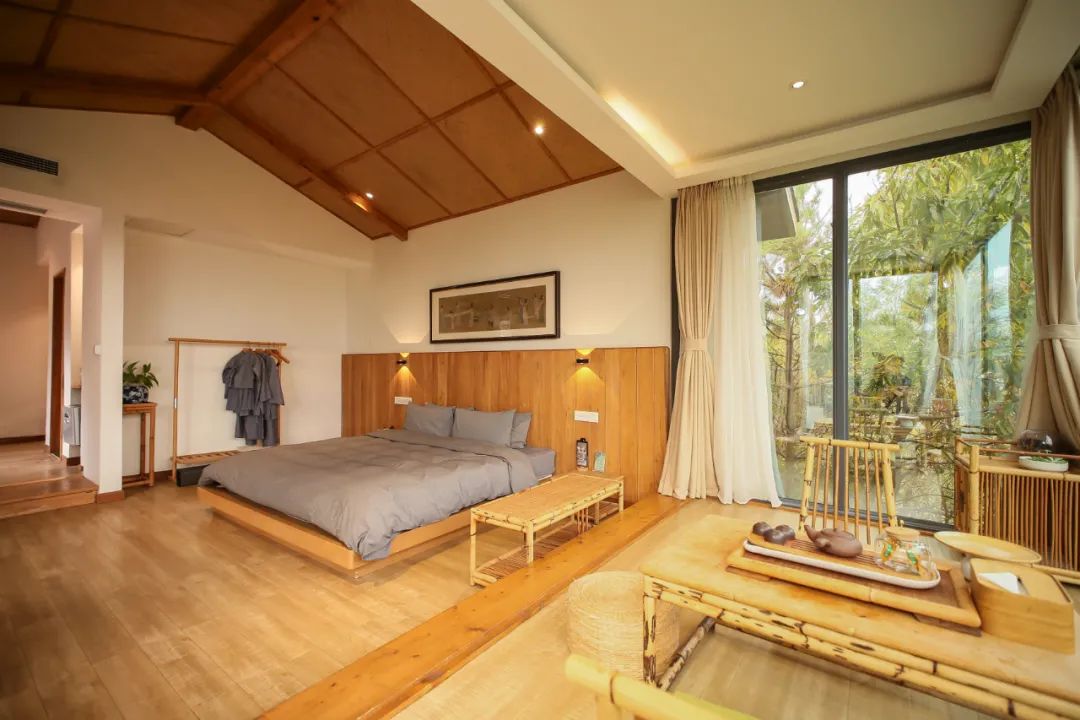 精心打造的原生态竹质家具,纹理清晰而富有质感的榆木家私,与小院内外自然呼应,营造回归自然的体验。