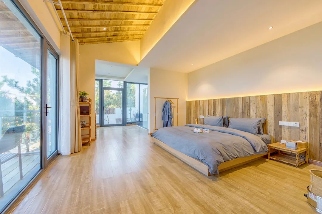 走进室内,更别有一番天地。古朴素净的墙面,明亮的落地窗,精致的榻榻米设计,营造出亲切宜人的氛围与恰到好处的空间尺度。