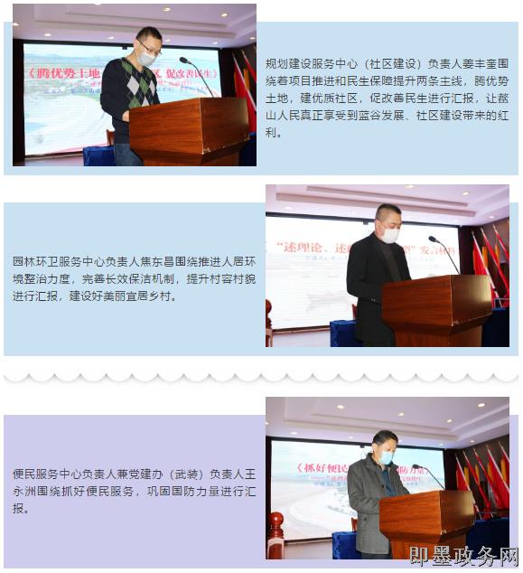 各中层干部轮流“迎考”,结合街道中心工作和分管工作系统阐述,擘画街道新蓝图,并接受现场评议,对标行业标杆,找准创新点、突破点和先进点,找准先进榜样,与典型找差距、列清单、以典型带动全局。