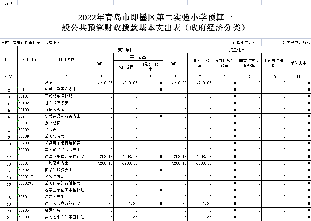 七、2022年单位预算一般公共预算财政拨款基本支出表(政府经济分类)