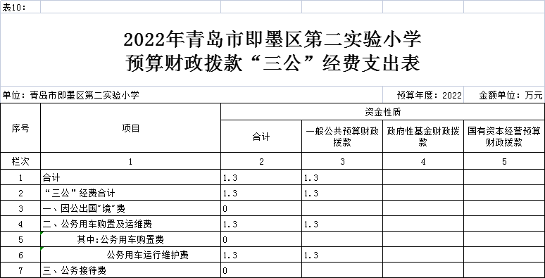 2022年,通过财政拨款安排的“三公”经费预算共1.3万元,比2021年减少7%。其中:因公出国(境)经费0万元,与2021年相比,增加(减少)0万元。公务用车运行维护费和购置费1.3万元,公务用车运行维护费1.3万元,与2021年相比,减少0.1万元,主要原因压减一般性支出;公务用车购置费0万元,与2021年相比,增加(减少)0万元。公务接待费0万元,与2021年相比,增加(减少)0万元,主要原因 单位无接待。