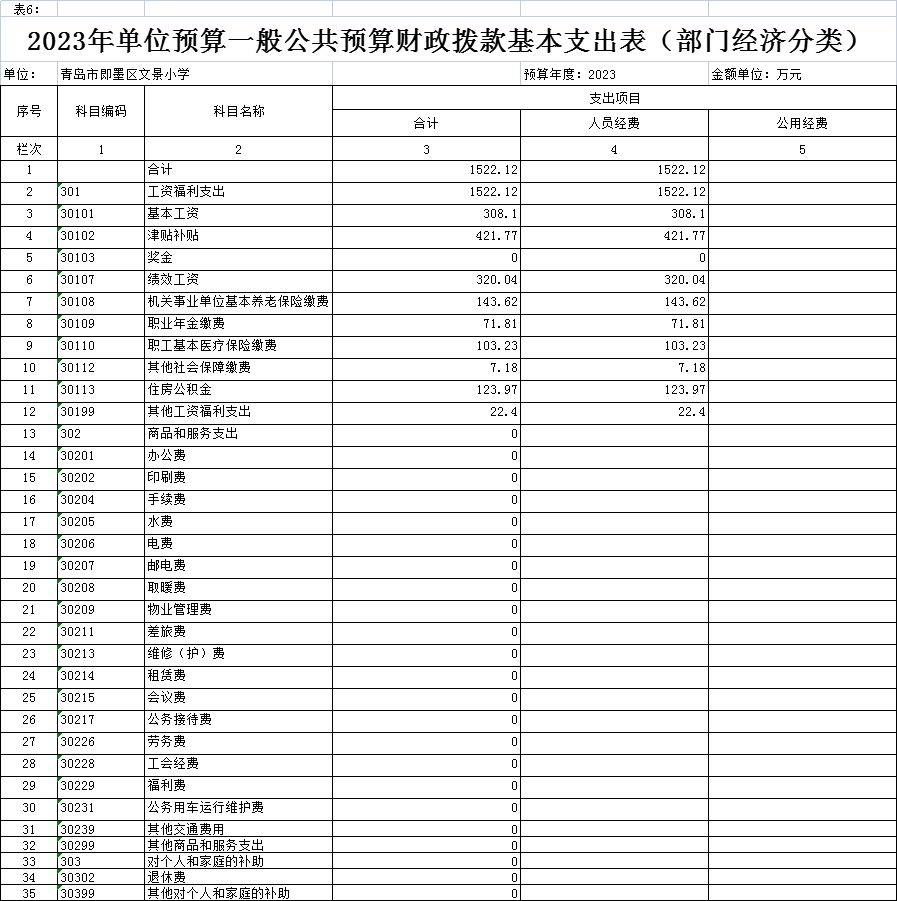 六、2023年单位预算一般公共预算财政拨款基本支出表(部门经济分类)