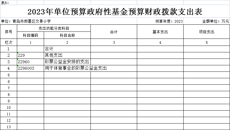 八、2023年单位预算政府性基金预算财政拨款支出表