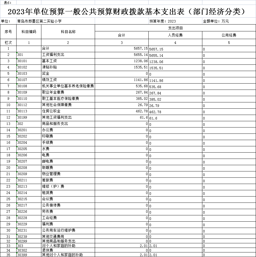六、2023年单位预算一般公共预算财政拨款基本支出表(部门经济分类)