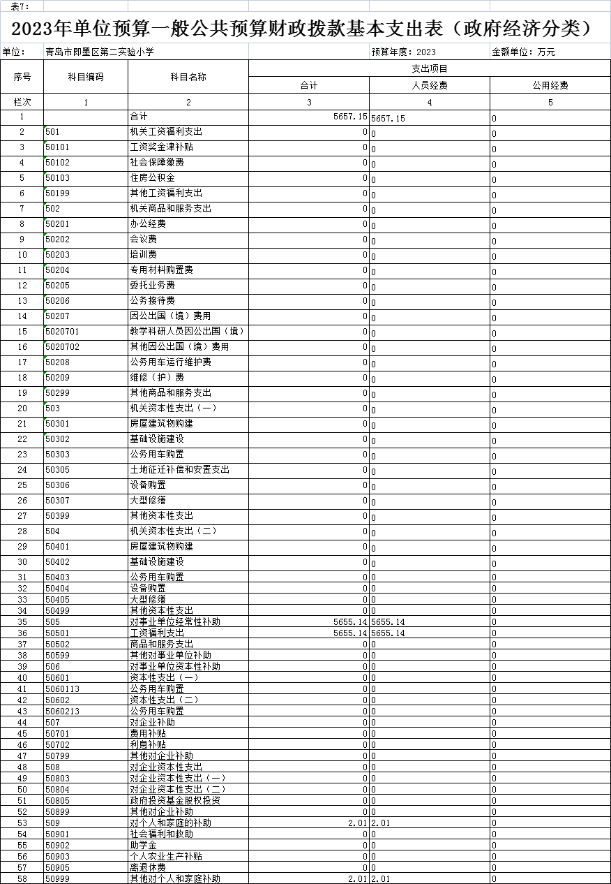 按政府预算支出经济分类主要包括:工资奖金津补贴5655.14万元、他对家庭和个人补助支出2.01万元。