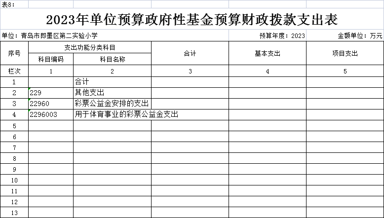 八、2023年单位预算政府性基金预算财政拨款支出表