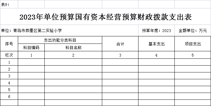 九、2023年单位预算国有资本经营预算财政拨款支出表
