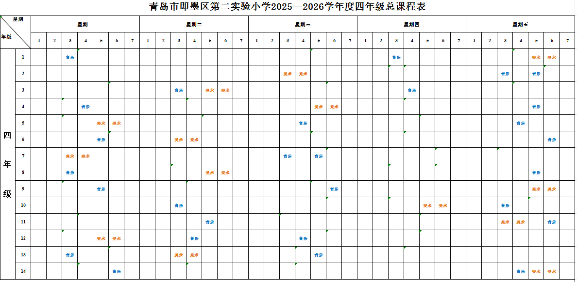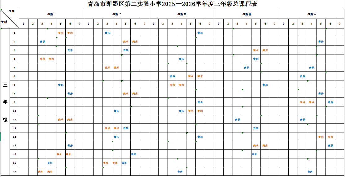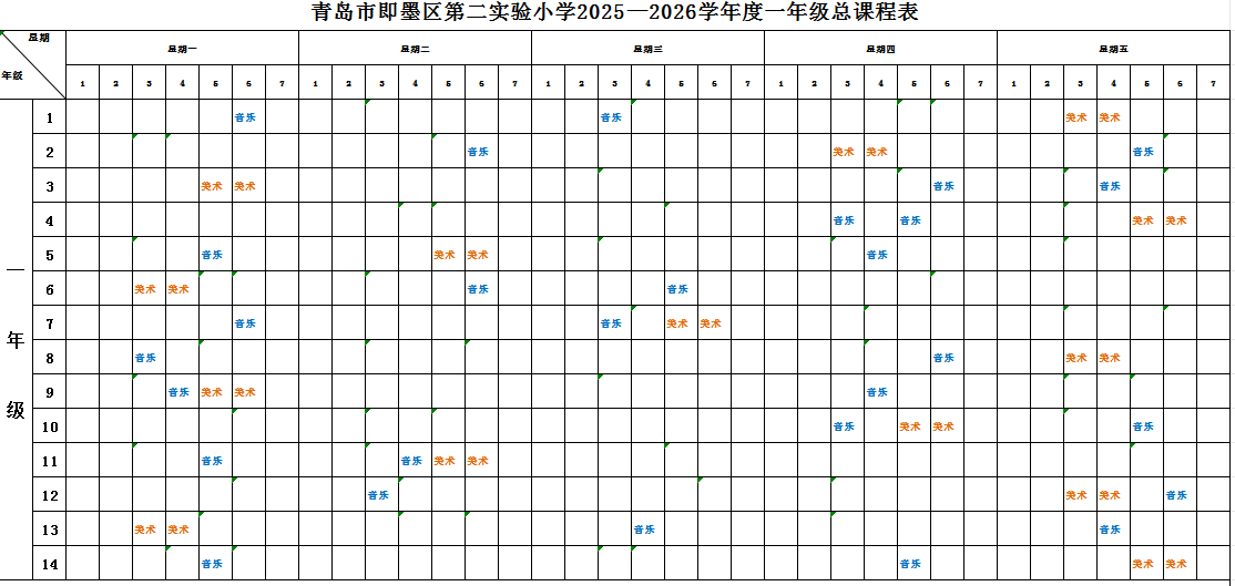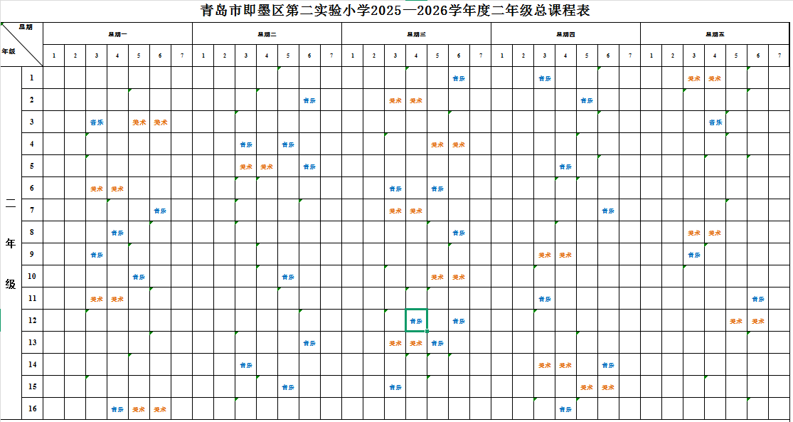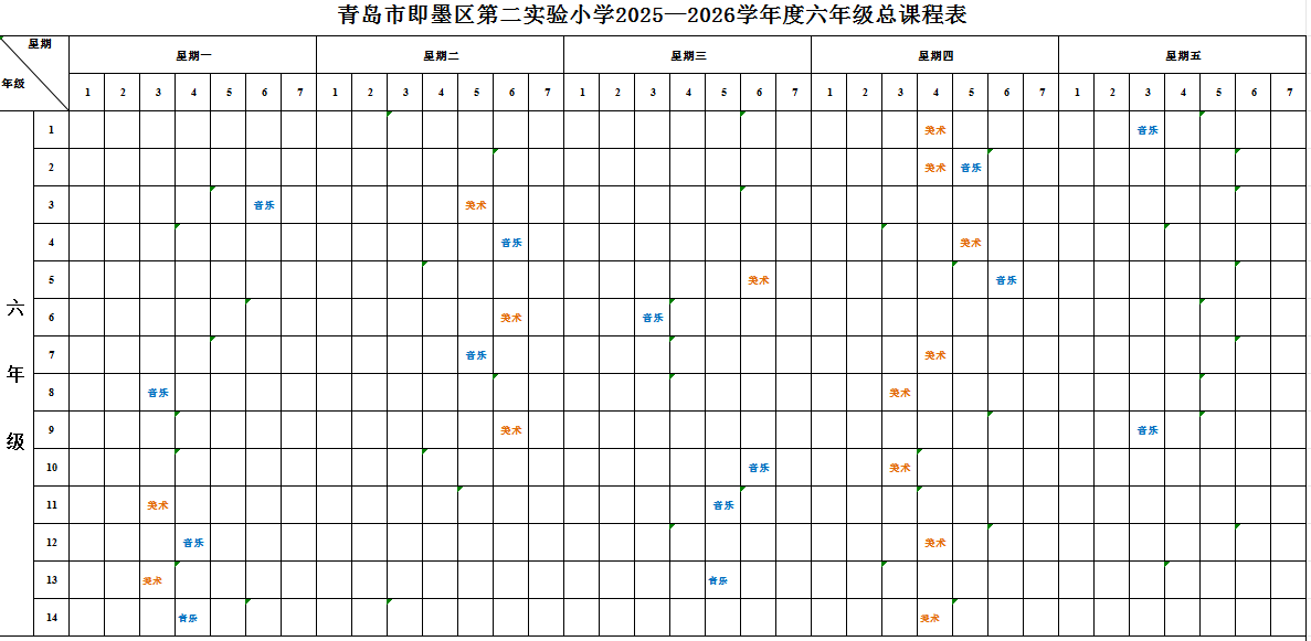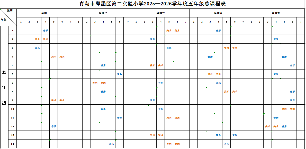 青岛市即墨区第二实验小学2025—2026学年度艺术(音美)课程表