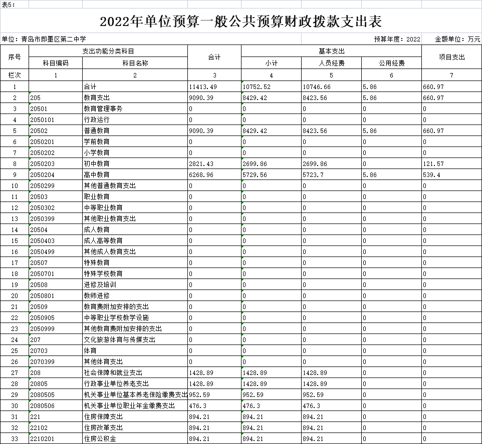 青岛市即墨区第二中学单位预算包括:青岛市即墨区第二中学单位本级预算
