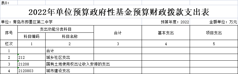 八、2022年单位预算政府性基金预算财政拨款支出表