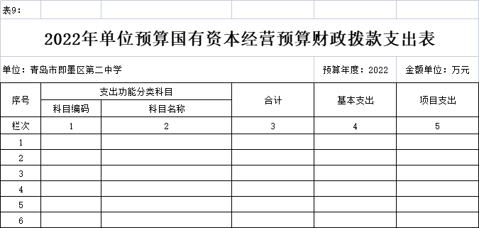 九、2022年单位预算国有资本经营预算财政拨款支出表