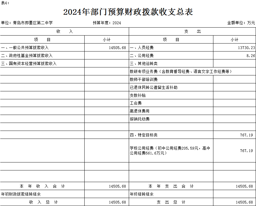 四、2024年单位预算财政拨款收支总表