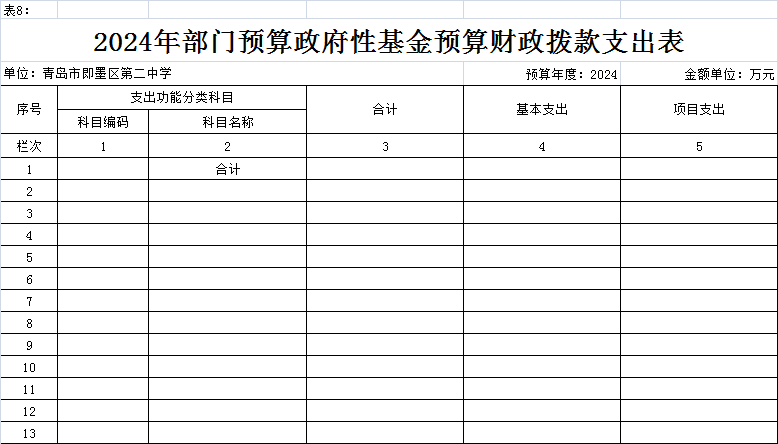 八、2024年单位预算政府性基金预算财政拨款支出表