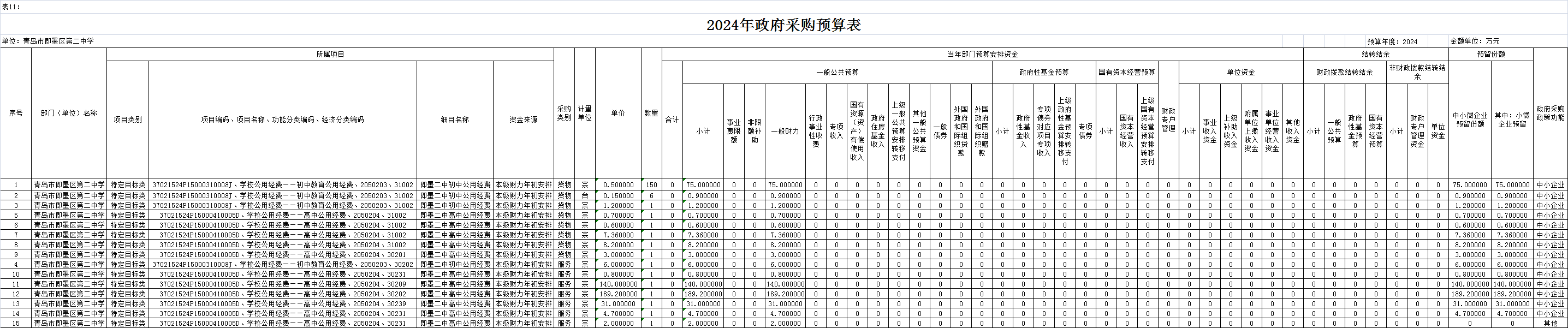 十一、2024年政府采购预算表