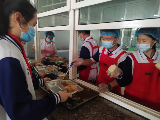 每学期,学校统筹安排,每周有不同的班级学生到餐厅参与志愿服务,为同学们打饭,维持排队秩序,帮助同学圈存饭卡等。通过此项活动,培养学生的服务性劳动实践能力,增强我劳动,我光荣的观念。