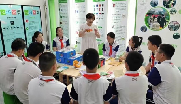 老师们向学生介绍垃圾分类的相关知识