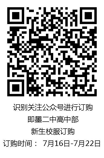 七、校服征订:今年的校服仍然由家长直接通过网上交费和填报信息征订,请家长扫描下面二维码进行校服征订,开学后由各班直接发给学生校服。