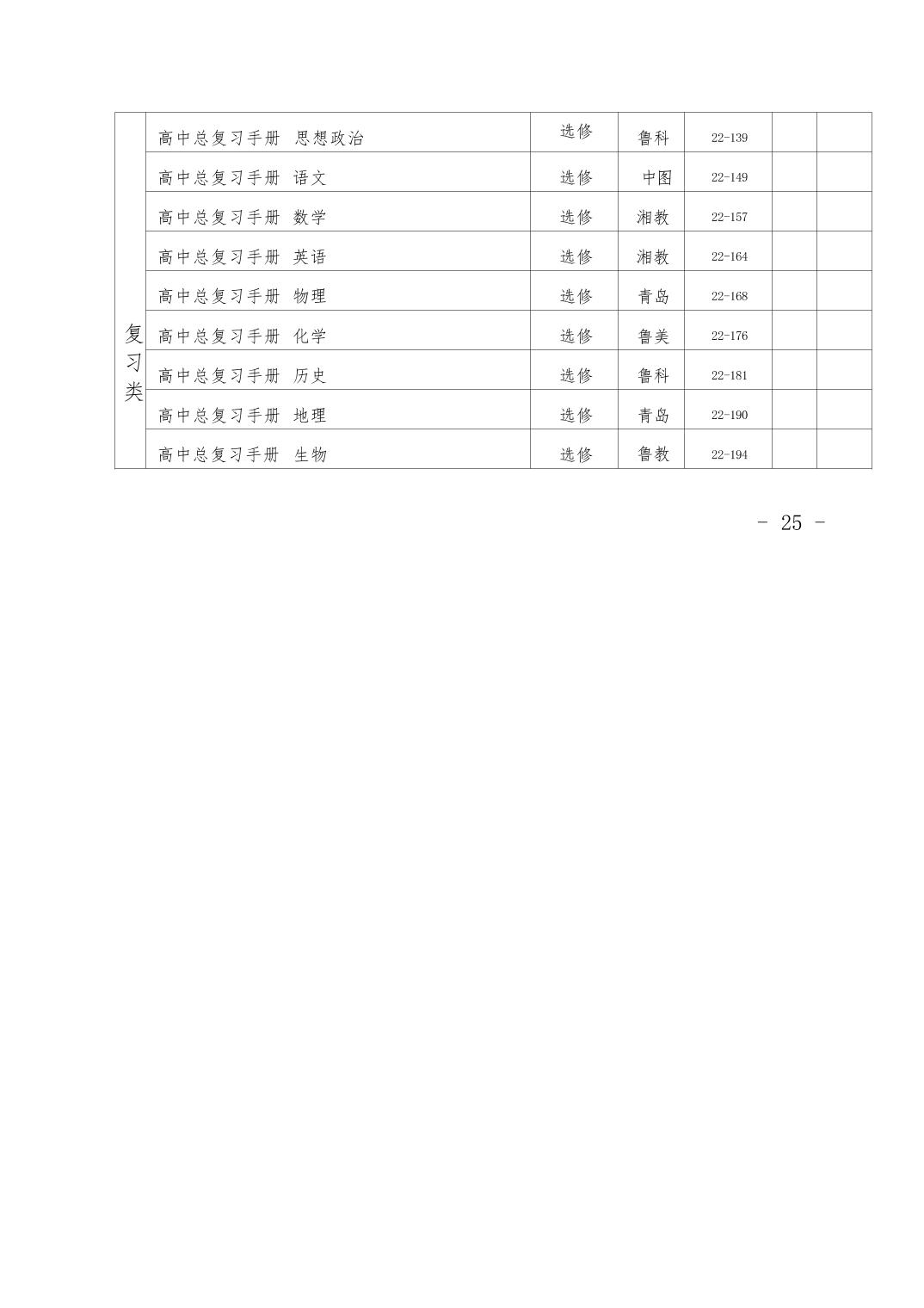 青岛市2023-2024学年普通高中教育教学用书目录