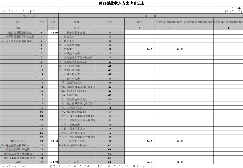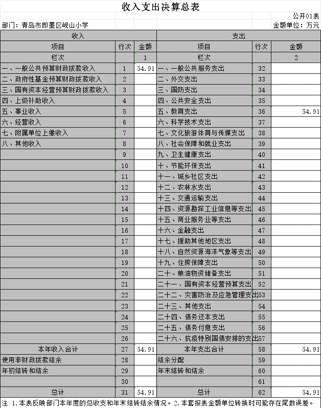 2022年度收、支总计54.91万元。与2021年度相比,收、支总计各增加54.91万元,增长100%。主要原因是2022年新建小学。