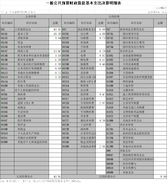 (1)教育(类)普通教育(款)归口管理的小学教育(项)。年初预算为54.91万元,支出决算为54.91万元,完成年初预算的100 %。决算数与年初预算基本持平主要原因是严格按照预算执行各项支出。