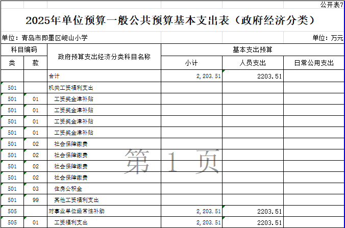 七、2025年单位预算一般公共预算财政拨款基本支出表(政府经济分类)