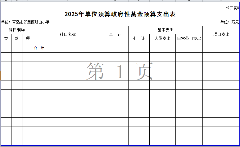 八、2025年单位预算政府性基金预算财政拨款支出表