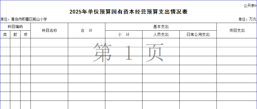 九、2025年单位预算国有资本经营预算财政拨款支出表