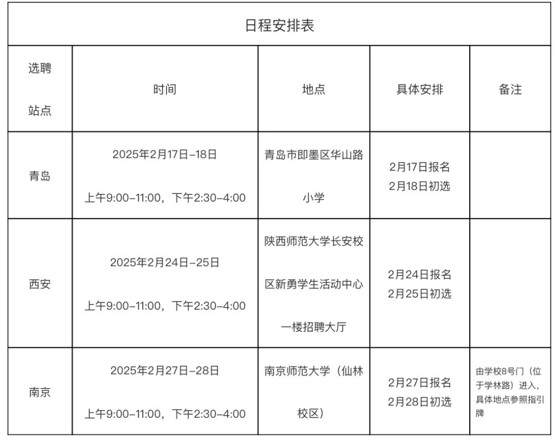 选聘部门将根据网上报名情况赴有关高校和在青岛市集中进行现场报名、资格审查和初选,现初步拟定时间、地点如下,如选聘站点有变化,相关公告将在即墨政务网公告公示栏目发布。应聘人员未按规定时间到现场报名、资格审查的,视为自动放弃应聘资格。