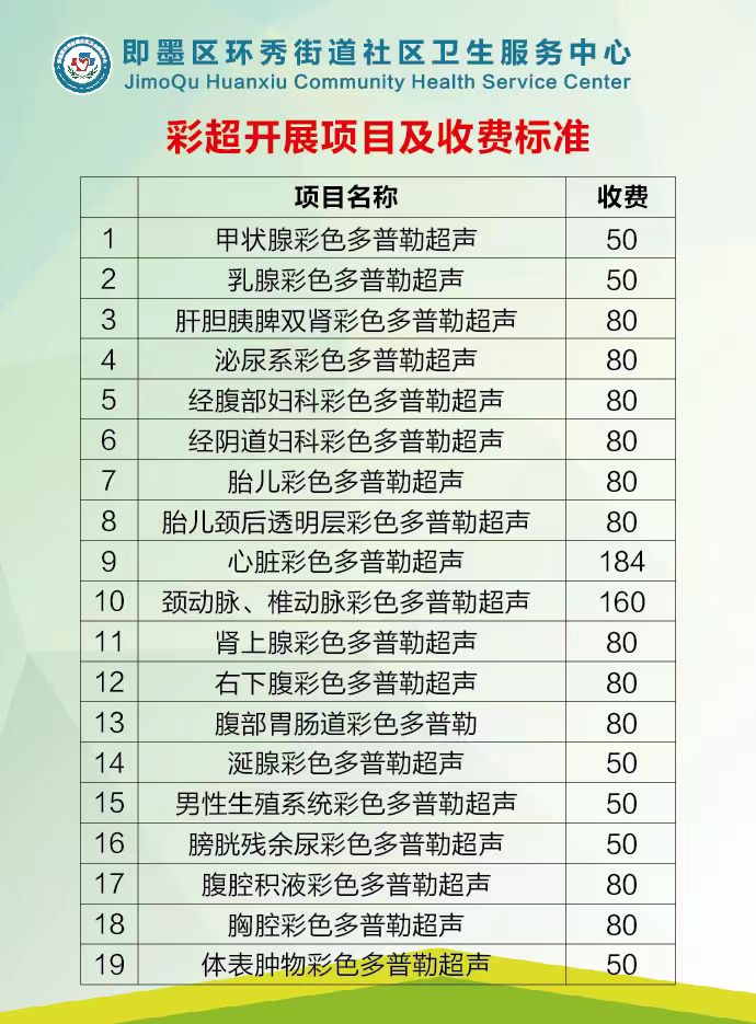 彩超开展项目及收费标准