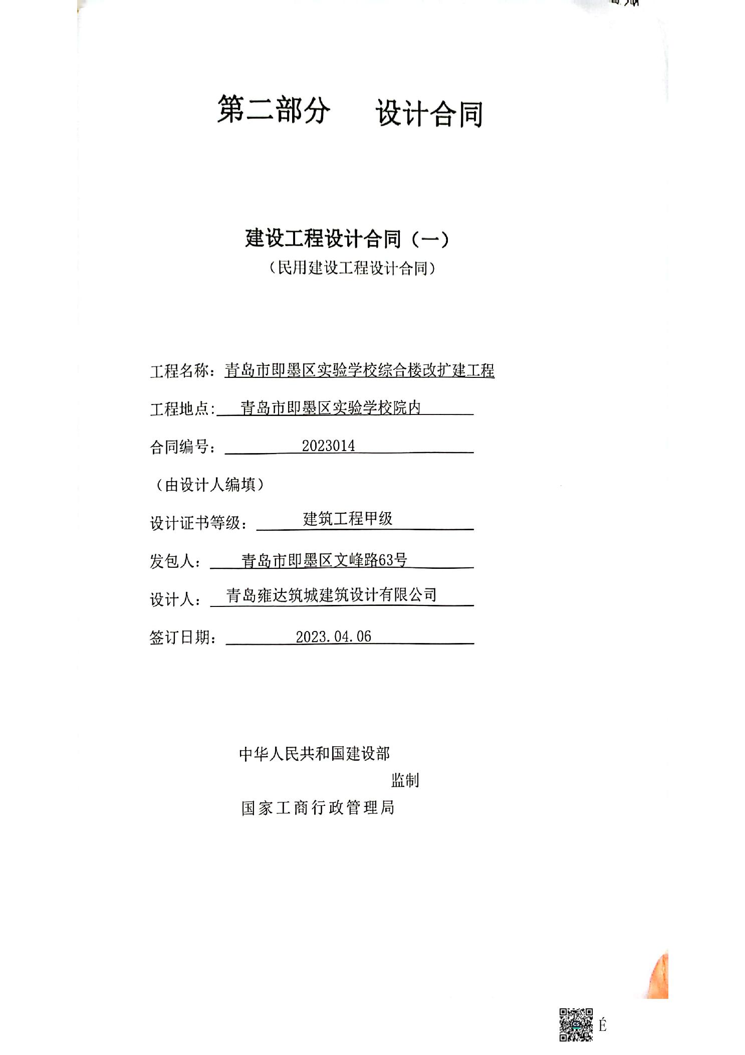 【招投标信息】即墨区实验学校综合楼改扩建工程施工合同
