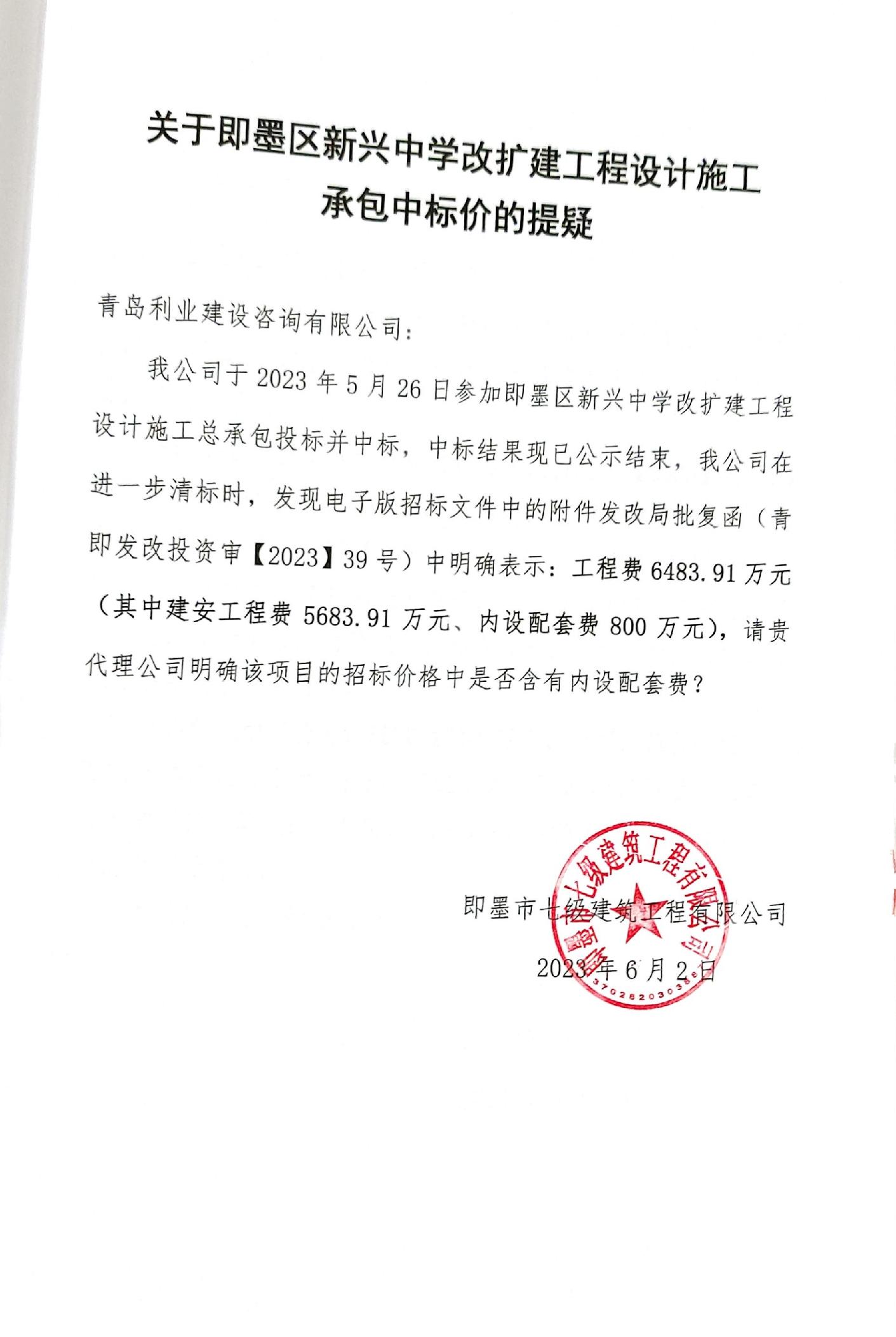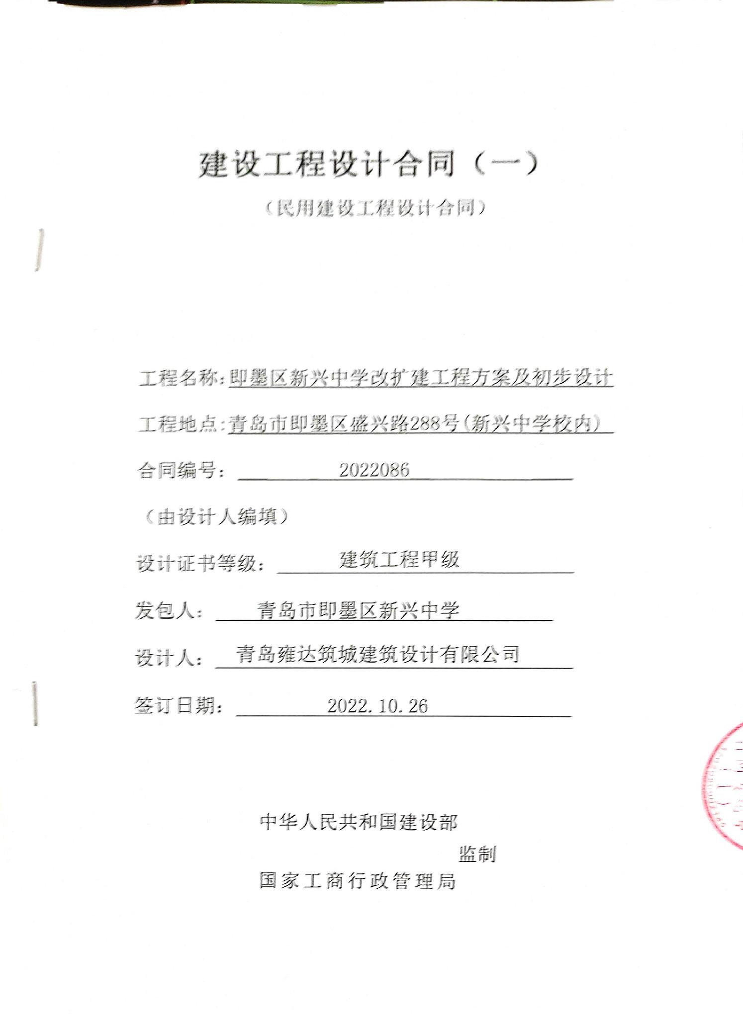 【招投标信息】即墨区新兴中学改扩建项目合同及履行情况